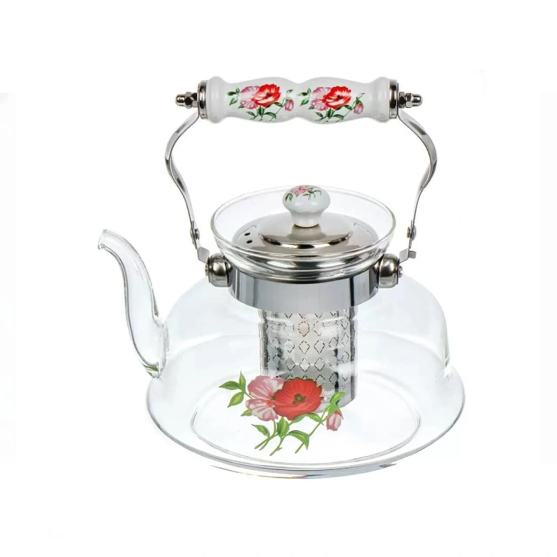 بتصميم الورود الأنيق ومصفاة للشاي من ستانلس ستيل ، السعة 1.2 لتر