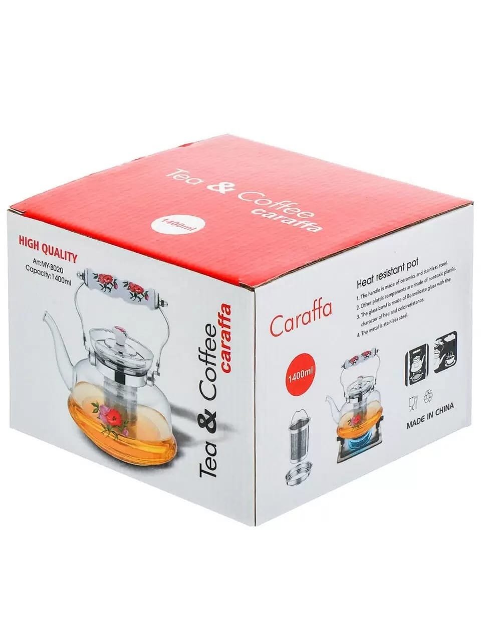 إبريق شاي حراري شفاف فاخر مع مصفاة للشايإبريق شاي حراري شفاف فاخر مع مصفاة للشاي