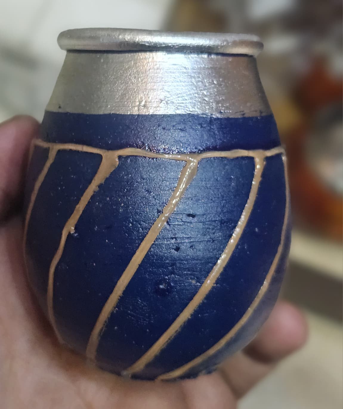 كمية جوزة متة صغيرة ب لونين بني و ازرق