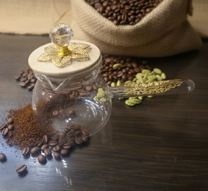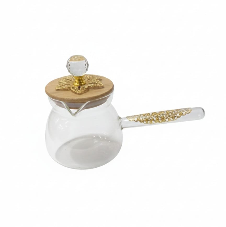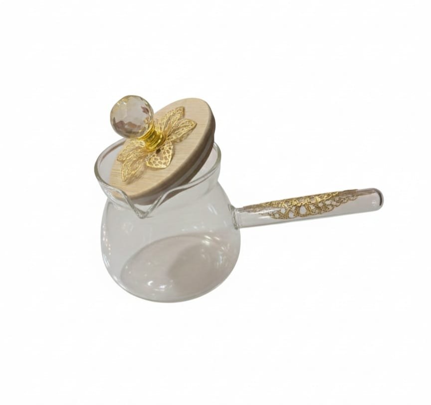 كمية ركوة بايركس حراري شفاف بغطاء خشبي