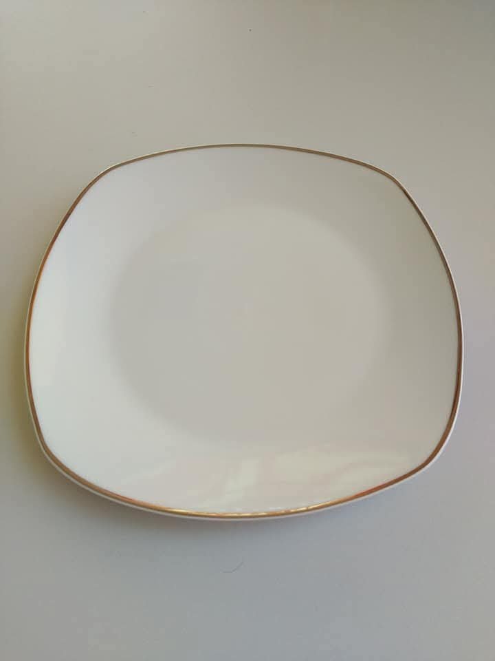 طقم صحن سيراميك 6 قطع مقاس 20 سم مربعة الشكل بحواف ذهبية