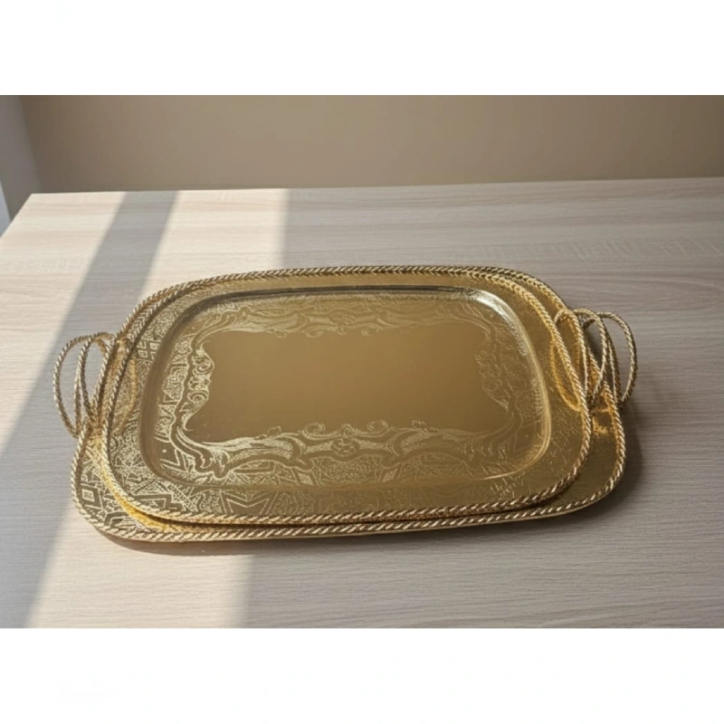 طقم صواني مجوز  ثقيل اصلي  بزخرفة ذهبية أنيقةطقم صواني مجوز ثقيل اصلي بزخرفة ذهبية أنيقة