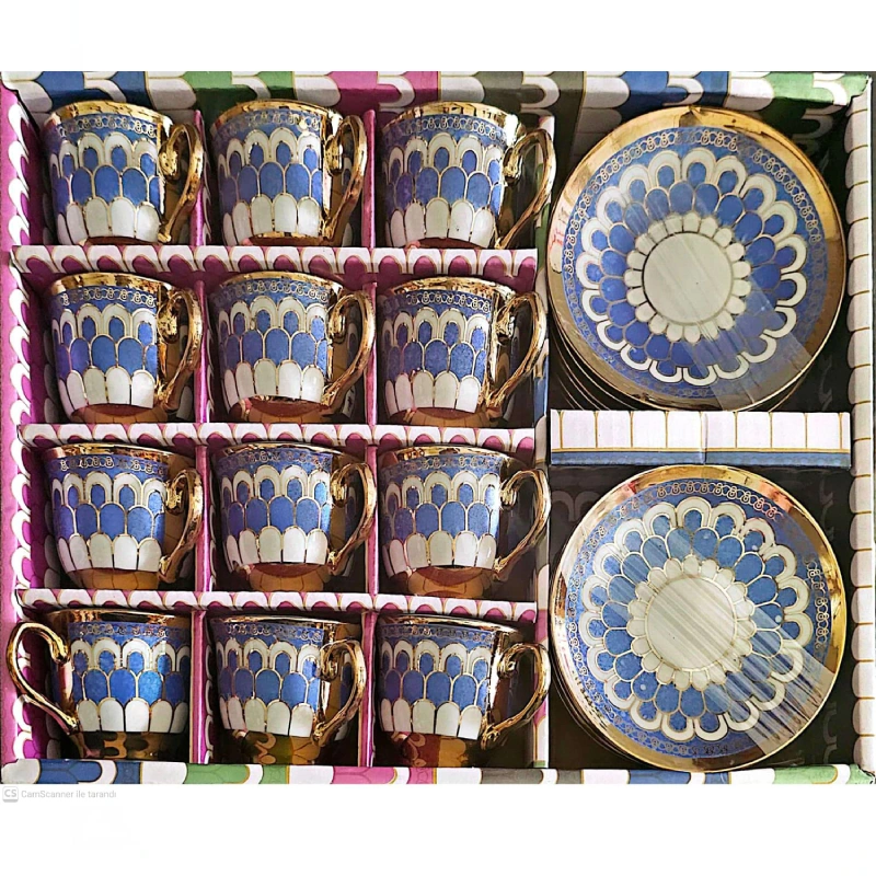 طقم فناجين قهوة فاخر عدد 12 فنجان و 12 تبسية