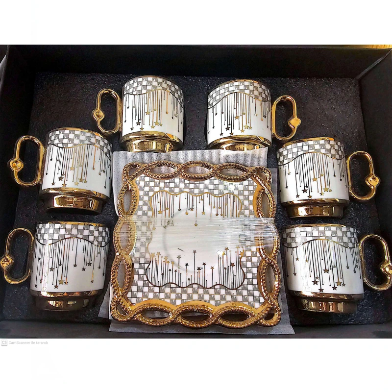 طقم فناجين قهوة فاخر عدد 12 فنجان و 12 تبسية