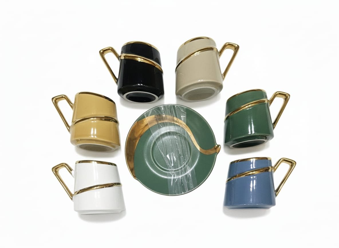 طقم فناجين قهوة فاخر عدد 12 فنجان و 12 تبسية