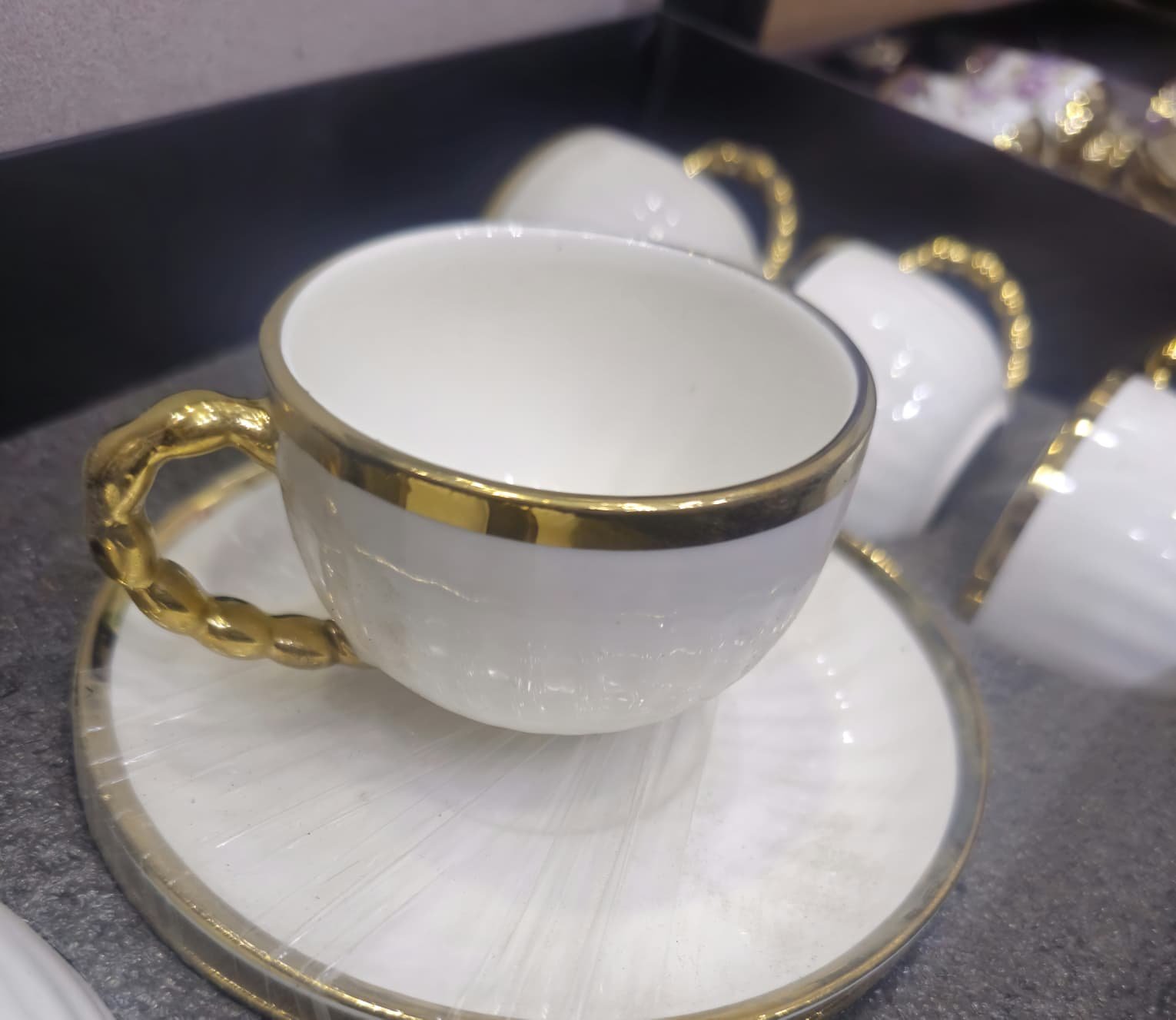 طقم فناجين وقهوة فاخر 12 فنجان و 12 تبسية