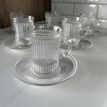 / طقم كاسات شاي 12 كاسة و 12 تبسية