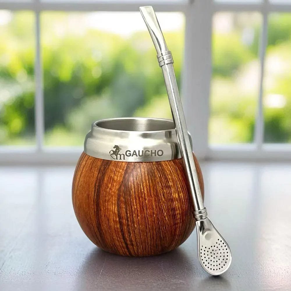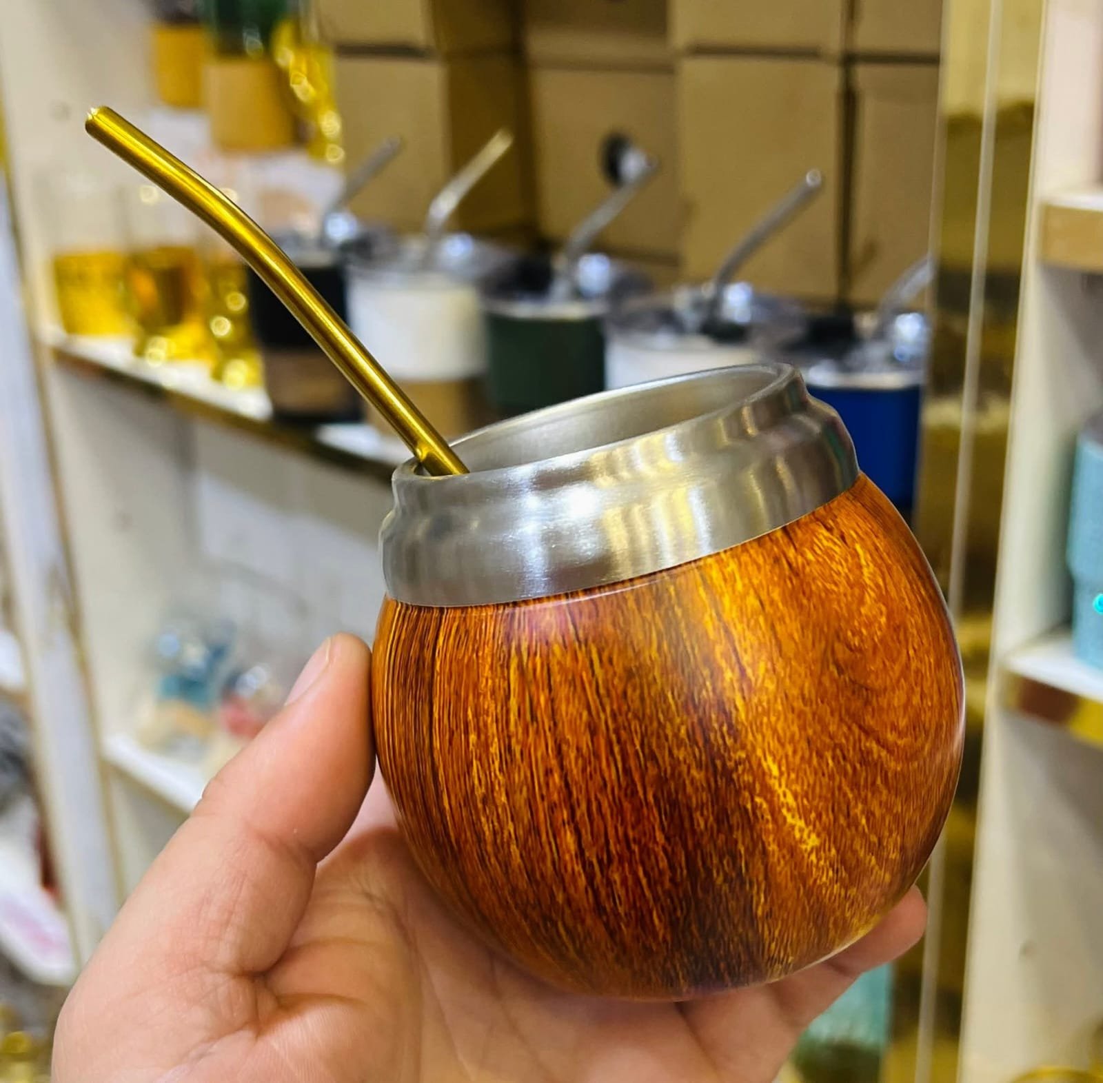 كاسة متة بتصميم أنيق و غلاف لون خشبي