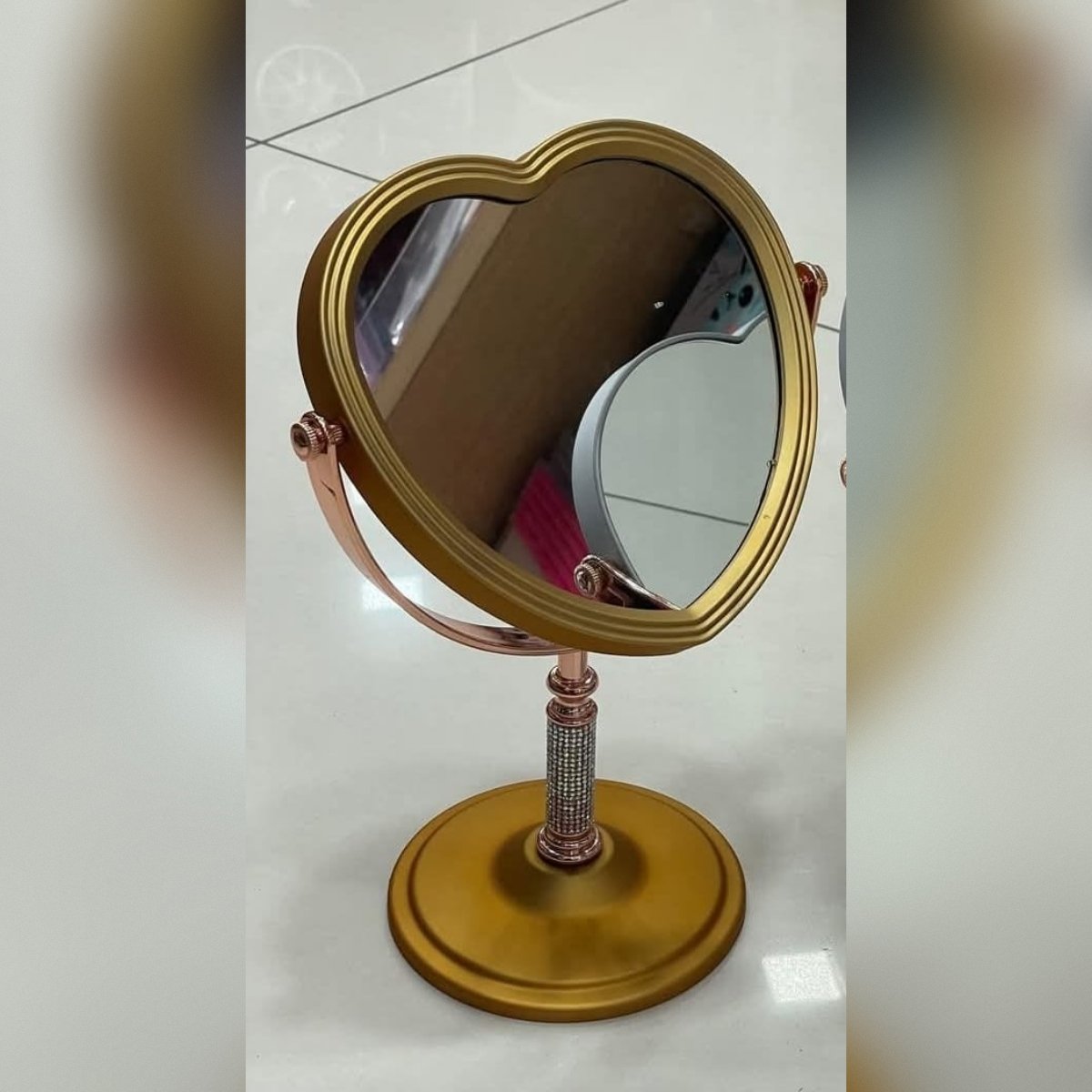 مراية على شكل قلب باطار ذهبي وقاعدة