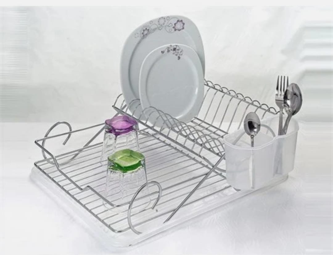 مع ستاند للملاعق والسكاكين بلاضافة الى صينية متحركة لتصفية الماء